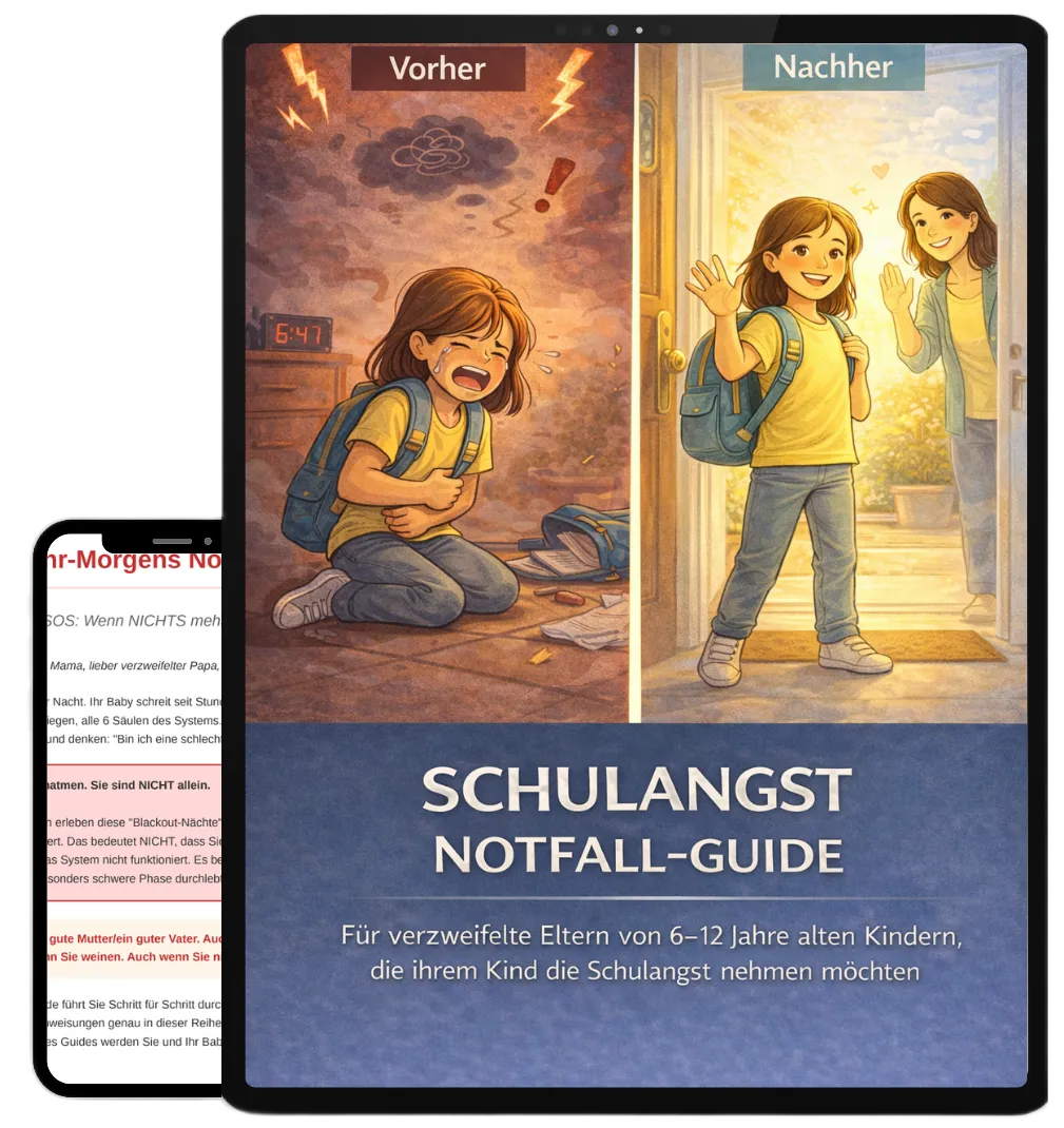 Der Schulangst-Notfall-Guide ist deine Rettungsleine für diese Momente, wenn dein Kind morgens vor Panik zittert und du kurz vor dem Nervenzusammenbruch stehst.