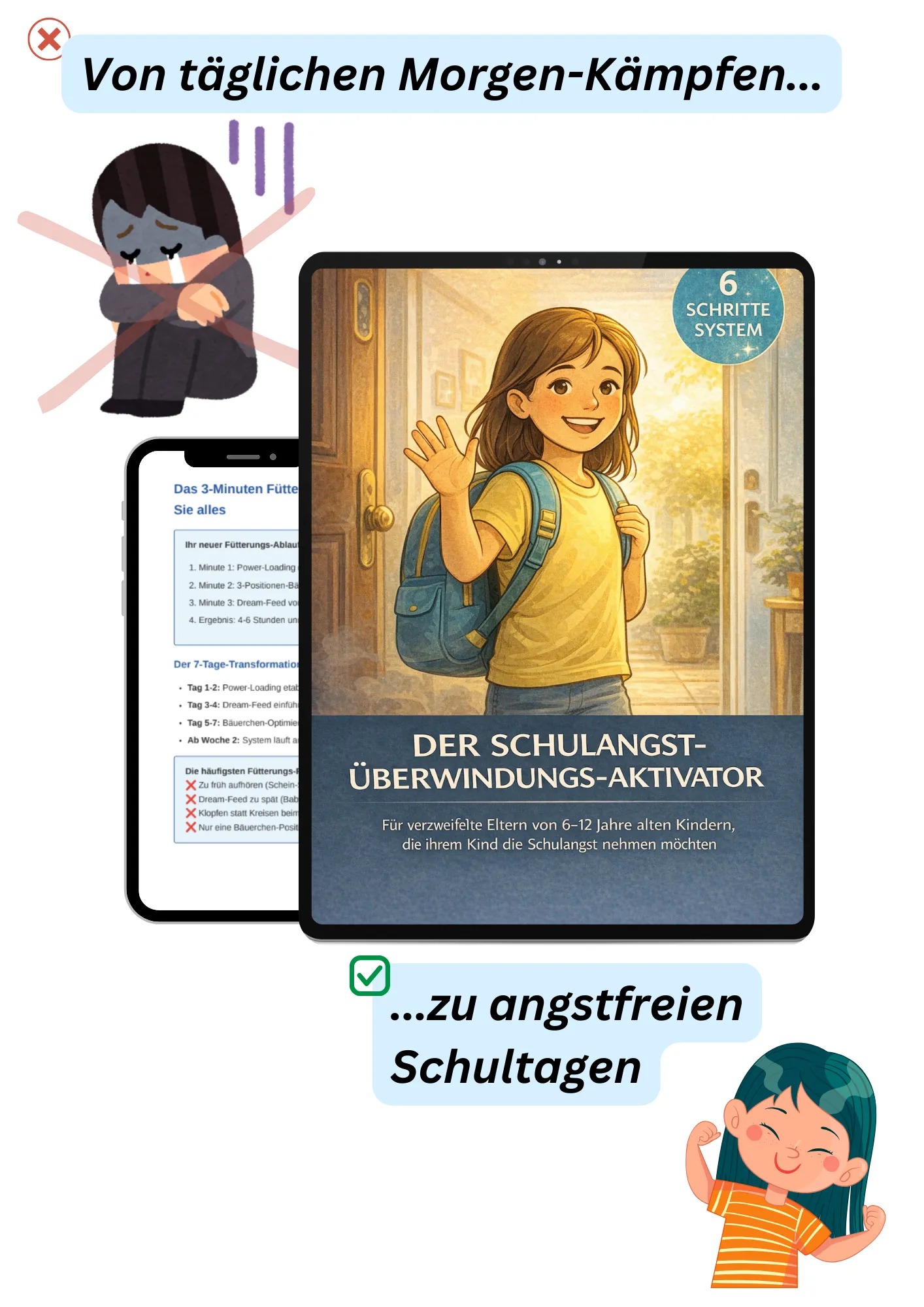 Nimm dir kurz 10 Sekunden Zeit und stelle dir vor: Dein Kind geht morgens zur Schule, ohne Tränen, ohne Kampf.